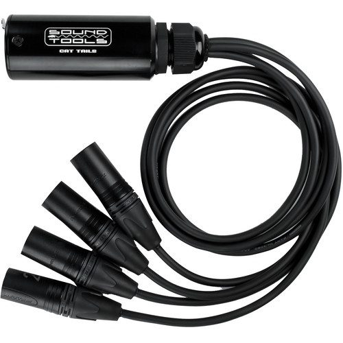 Additionally, the CAT Tails extension system consists of a male XLR sender and a female XLR receiving unit (both sold separately). This allows you to send four XLR audio signals thru a Cat 5/6/7 cable hundreds of feet away and convert it back to the four XLR balanced analog audio, AES/EBU, DMX, and Clear-Com signals.