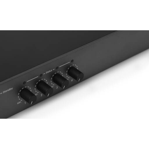 The PowerZone 504 is a 4 x 125 Watt power amplifier in a half width, 1U format. It drives both low impedance (4Ω to 16Ω) and constant voltage (70V/100V) loudspeaker loads.