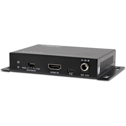 The AU-H101A is a small-size HDMI 2.0 audio de-embedder with 1 HDMI input, 1 HDMI output, and three different types of audio outputs. It is designed to extract audio from a HDMI signal via stereo balanced L/R audio, analog RCA, and coaxial digital audio output.It also features an HDMI equalizer to ensure full HDMI signal integrity is maintained. The AU-H101A can compensate for poor source signals or low-quality cabling at the end of a long cable run. EDID and CEC pass-through ensures that the source video is at the optimal resolution for the display and can be controlled by CEC from source.