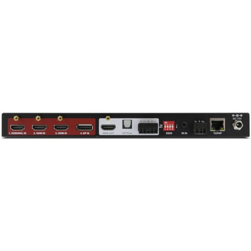 The SW-H411A supports stereo and multichannel audio on the HDMI inputs. In addition to the audio embedded in the HDMI output stream, the audio is simultaneously de-embedded to an optical digital audio output and a balanced analog audio output.