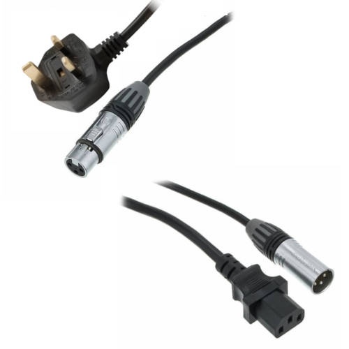 Approved 13A plug with XLR female connector at one end, IEC Female and XLR Male connector at the other end.