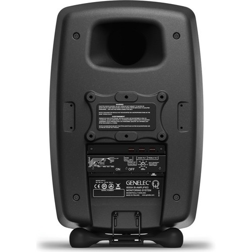 The 8050B is built with Intelligent Signal Sensing (ISS) technology which automatically activates the speaker when an audio signal is detected, and puts it in Standby Mode when no signal is present, reducing the energy consumption to less than 0.5 watts. The 8050B features a 120 watt high frequency amplifier for its 1" tweeter, and a 150 watt low frequency amplifier for its 8" woofer. The bass response is expanded by a rear-facing reflex port, and a separately available Genelec subwoofer can be used to monitor a wider array of frequencies.