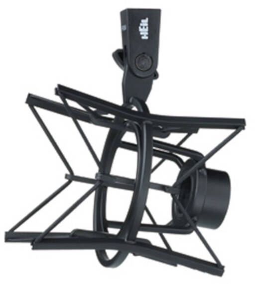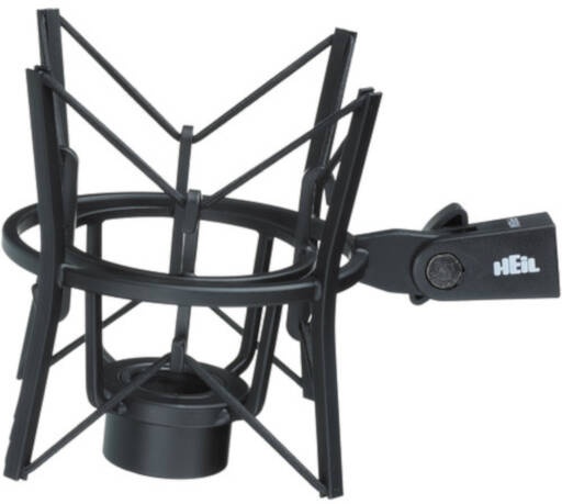 The black PRSM Shockmount from Heil Sound is a flexible support system for the PR 30 and PR 40 microphones. The PRSM helps suppress low-frequency rumble by absorbing and damping vibrations.