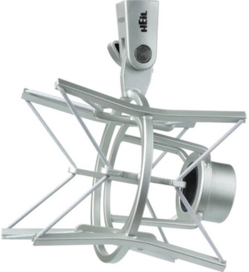 The champagne PRSM Shock Mount from Heil Sound is a flexible microphone support system that helps suppress low-frequency rumble by absorbing vibrations. It is designed for use with the large-diameter PR 30, PR 31 and PR 40 microphones. Its 5/8" threading mounts onto the PL2T Topless boom mount in addition to standard microphone stands.