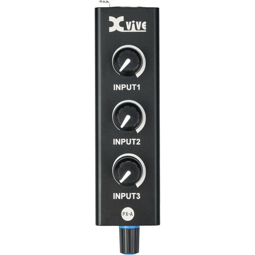 The PX-A from Xvive is a three-channel beltpack mixer and headphone amplifier designed for in-ear monitoring applications when used with a PX-B snake (available separately). The PX system allows musicians, vocalists, and performers to dial in their own preferred blend of the three input signals for a custom monitor mix.Choose Your Sources