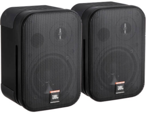 The black JBL Control 1 Pro are a pair of compact professional loudspeakers offering high quality at an affordable price for professional or residential applications. The rugged enclosure houses a 5" woofer and a 0.75" dome tweeter, which combine to provide a frequency response of 100 Hz to 18 kHz. When powered by a 150W (continuous) amplifier, the speaker provides a maximum SPL of 114 dB. Additionally, the cabinet is magnetically shielded for safe use near video monitors.