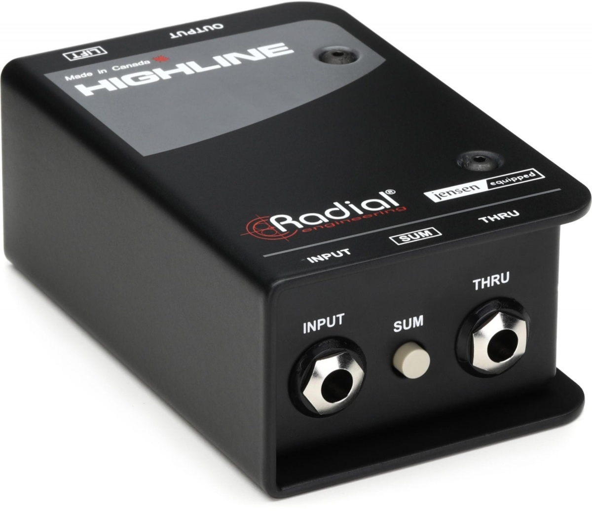 Guitarists and bassists who use utilize amp modelers on their pedalboard have a unique set of problems: While amp sims can produce line-level outputs, they often still use 1/4" unbalanced connectors that won't support long cable runs without degrading the tone of the instrument, and they are particularly susceptible to noise from ground loops when connected directly to the PA. The Highline addresses these issues by inserting a 1:1 transformer into the signal path, which provides isolation to reduce noise, protects against phantom power, and keeps the signal at line level for direct connection to the PA system.