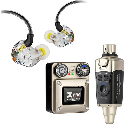 Designed to provide a complete personal monitoring system for one performer, the U45T9 from Xvive Audio includes one U45T transmitter, one U45R Receiver, and one pair of T9 IEM earphones. The T9 earphones offer superior sound reproduction tuned specifically for live musicians.